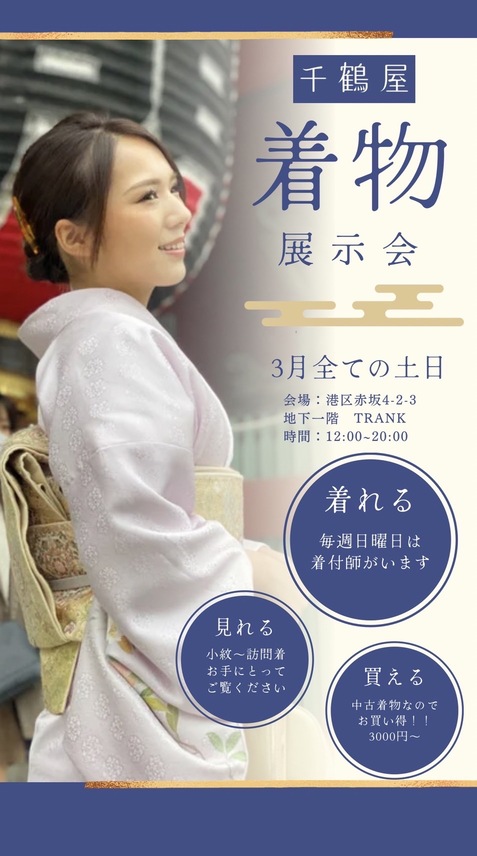 千鶴屋さんの着物展示会に着付け師としてお誘いいただきました。